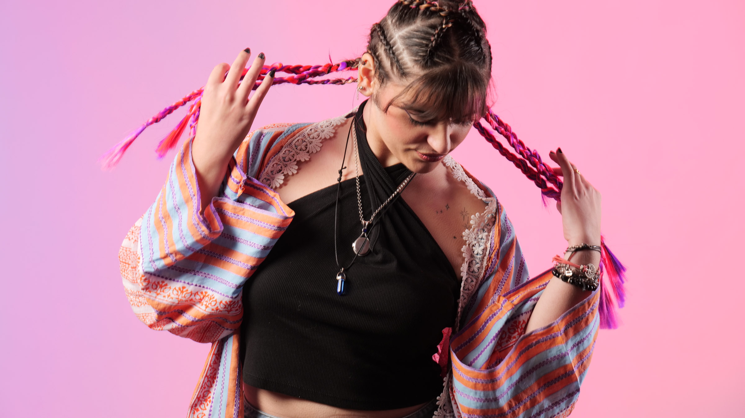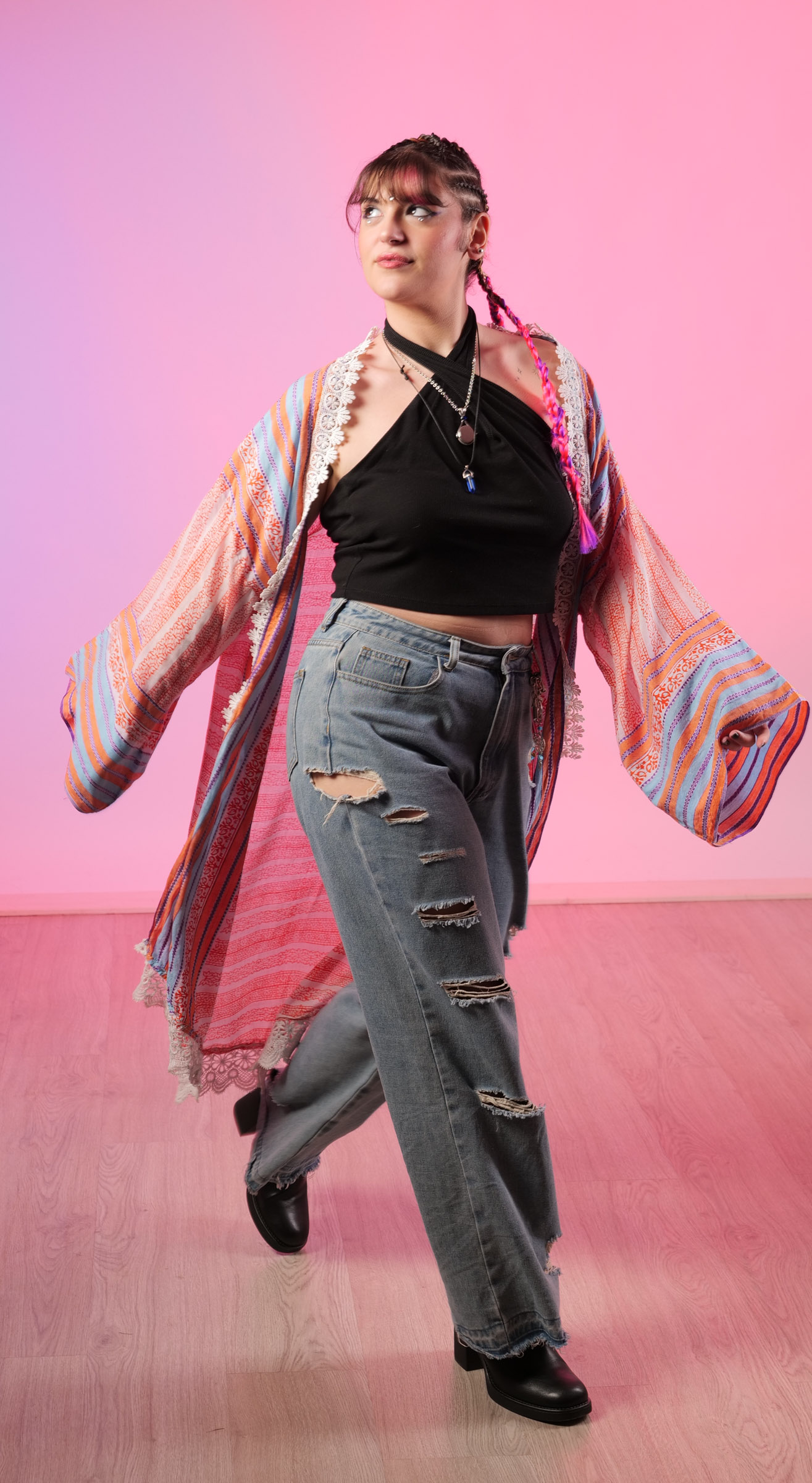 Kimono rayas con encaje